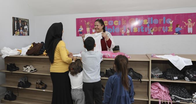 İhtiyaç sahibi vatandaşların belli aralıklarla gidip çocukları için ücretsiz kıyafet temin edebildiği Kıyafet Evi, bu 23 Nisan’da bayrama özel kıyafetlerle bezendi. Dikiş kursu kursiyerlerinin diktiği süslü etekler, pantolon ve şortlu takımlar çocukların beğenisine sunuldu. Çocukların yüzünü güldürmek için projeler üretmeye devam eden Büyükşehir, el emeğiyle hazırlanan bayramlık kıyafetlerle de çocukların kalbine dokundu.