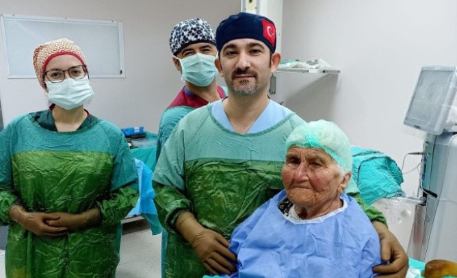 Fadime Çirpi’nin 20 gün önce Silifke Devlet Hastanesine muayene olmaya geldiğini belirten Silifke Devlet Hastanesi Göz Sağlığı Hastalıkları Uzmanı Op. Dr. Halil İbrahim Akgün, “Teyzemiz yaklaşık 20 gün önce bize geldi. 2 göz kataraktı vardı. Bu kataraktları ameliyat yapmayı planladık. Çok yoğun bir kataraktı vardı. Görmeleri de yaklaşık beş metre civarındaydı. Günlük işlerinde zorlanıyordu. 15 gün önce ilk göz sağ kataraktını yaptık. Bugün de sol katarakt ameliyatını yaptık. Gözleri açılmaya başladı. Erken dönemde biraz ödemleri var. Ödemleri çözüldü. Görmesi açılmaya başladı. Gün gün zaman geçtikçe görmeleri daha da açılacak. Bütün hayat fonksiyonlarını yapmaya başlayacak. Bütün ihtiyaçlarını kendi görebilecek” dedi.