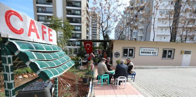 Mersin’in merkez ilçe Mezitli Belediyesinden yapılan açıklamaya göre, Davultepe Mahallesinde kütüphanenin yanı sıra kafeterya ve etkinlik bahçesinin bulunduğu Okuma Evine gelen Mersinliler, günlerini aktif bir biçimde geçirmenin mutluluğunu, kitap okuyarak, sohbet ederek, çay ve kahvelerini içerek yaşıyorlar. 2019’da hizmete giren ve Yeni Kuşak Köy Enstitüleri Derneği ile birlikte hizmet veren Okuma Evine gelenler, bahçede bulunan zeytin ve hurma ağaçlarına bakım yapıyor, sebze meyve yetiştiriyorlar.