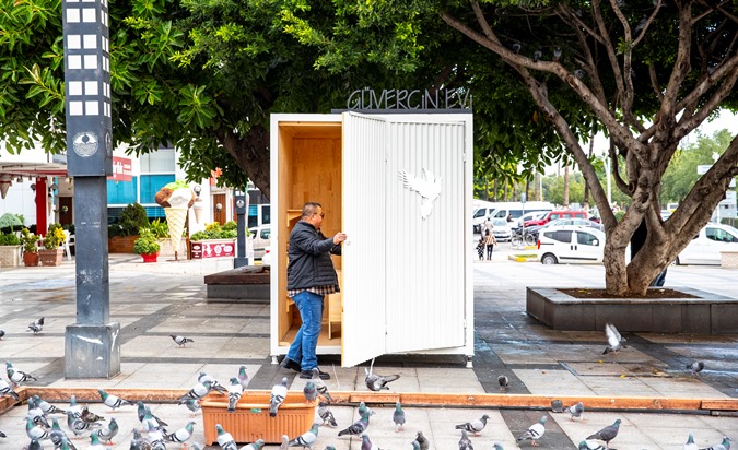 Mersin Büyükşehir Belediyesi Etüt ve Projeler Dairesinde görev yapan mimar Zeynep Damar, Ulu Çarşı’da 20 yıldır kuşyemi satan esnafın kulübesini yenilediklerini belirterek, “Burada güvercinlere yem satışı yapan esnafımızın çok kötü şartlarda çalıştığını gördük. Kulübe için Etüt ve Projeler Dairesi tasarım ofisi olarak bir tasarım geliştirdik. Fen İşleri Dairesi Başkanlığı’nda kendi atölyemizde imalatını tamamlayarak esnafımıza teslim ettik”dedi.