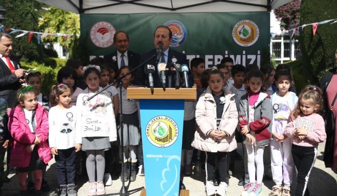 Mersin Valisi Ali Hamza Pehlivan ise konuşmaya çocuklarla birlikte çıktı. Çocuklarla birlikte konuşan Vali Pehlivan, her yıl olduğu gibi bu yıl da bugünden itibaren ormancılık faaliyetlerinin başlangıcının sağlanacağını dile getirdi. 6 Şubat’ta büyük depremlerle ülkenin sarsıldığını vurgulayan Pehlivan, “11 ilimiz birinci derecede bu depremlerden etkilendi. Yaklaşık 13,5 milyon vatandaşımız doğrudan etkilendi. Bu depremlerde maalesef 50 bin 96 can kaybımız, 107 binin üzerinde yaralımız var. Bugün ve bu hafta dikeceğimiz bütün fidanları depremde kaybettiğimiz vatandaşlar için dikeceğiz” ifadelerini kullandı.