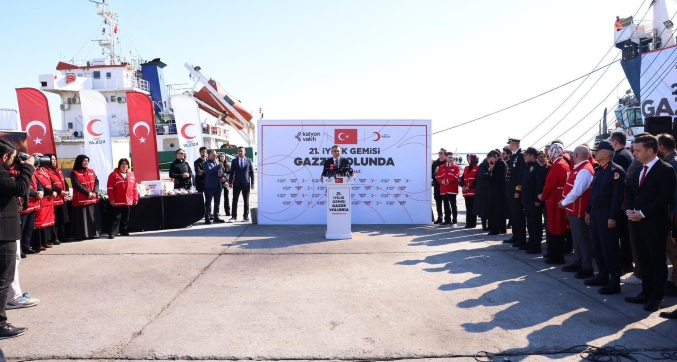 Türkiye’nin her zaman mazlumların ve ihtiyaç sahiplerinin safında durduğunu ifade eden Mersin Valisi Atilla Toros, “Milletimiz tarih boyunca zalimin karşısında durmuş, mazlumun yanında saf tutmuştur. Nerede bir feryat yükselirse oraya kulak vermiş, nerede bir gözyaşı aksa oraya vicdanıyla koşmuştur. Diline, diline, ırkına, rengine bakmadan insan olmanın medeniyet değerlerinin inancının geleneğini yerine getirmiştir. Bugün de aynı vicdanla aynı duruşla bir kez daha bir aradayız. Mersin Liman’dan uğradığımız bu gemi, Gazzeli kardeşlerimize sadece yardım malzemesi taşımıyor. Aynı zamanda milletimizin selamını ve duasına taşıyor. Bugün mübarek Ramazan ayının ilk günü. Merhametin çoğaldığı, paylaşmanın bereketlendiği bir zaman. Bu anlamlı günde Gazze’ye bir kez daha uzanmak, Ramazan’ın ruhuna yakışan bir duruştur” dedi. (Mersin Times)