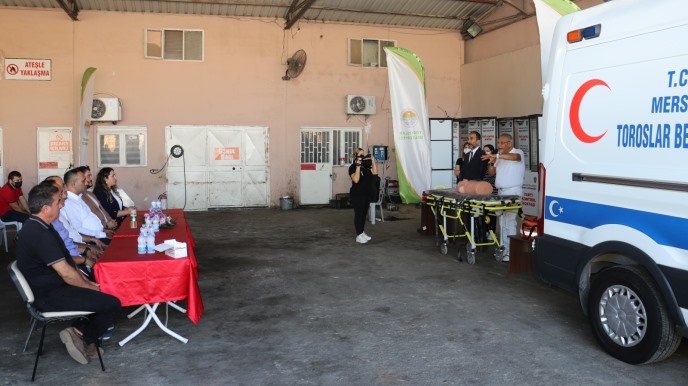 Toroslar Belediyesi’nin, Dünya İlk Yardım Günü kapsamında belediye personeline yönelik düzenlendiği “İlk Yardım” eğitiminde duygu dolu anlar yaşandı. Başkan Yılmaz’ın da birim müdürleriyle katıldığı eğitimde, Toroslar Belediyesi Sağlık İşleri Müdürlüğü yetkilileri, 112 Acil Servis’i arayarak acil vaka ihbarında bulundu. 112 Acil Servisi amirlerinin daha önceden konuyla ilgili bilgilendirildiği ihbarı alan sağlık ekipleri ise amirlerinin yönlendirmesiyle ambulansla kısa sürede ilk yardım eğitiminin verildiği Toroslar Belediyesi’nin Makine İkmal Müdürlüğü’ne geldi. Yapılan bu sürpriz karşısında şaşıran sağlık ekipleri ise duygularını gizleyemedi.