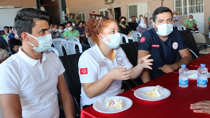 Sağlık ekipleri, üzerinde “İlk yardım hayat kurtarır” sloganının yer aldığı pastayı da Başkan Yılmaz ile keserek, nazik düşüncesinden dolayı Başkan Yılmaz’a teşekkür ettiler. Hayatlarının şokunu yaşadıklarını ve çok duygulandıklarını belirten sağlık ekipleri, kendileri için yapılan böyle anlamlı bir kutlamayı hiçbir zaman unutmayacaklarını ifade ettiler.