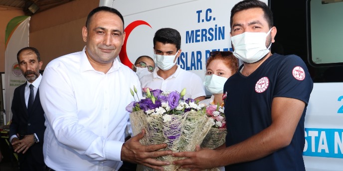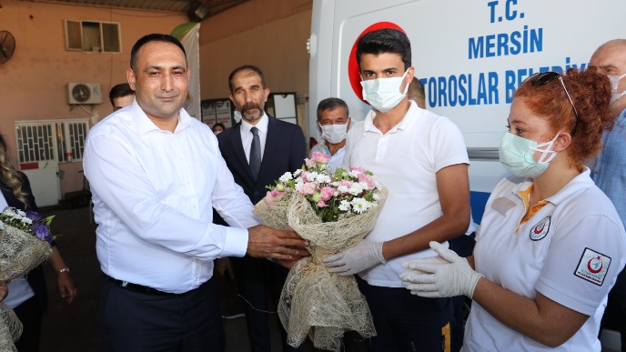 Toroslar Belediye Başkanı Atsız Afşın Yılmaz, tüm sağlık çalışanları adına 112 Acil Servisi ekibine teşekkür ederek, çiçek takdim etti ve Dünya İlk Yardım Günlerini kutladı.