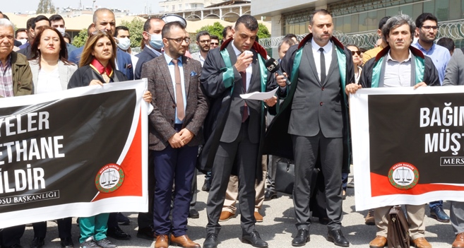 Yargının kurucu unsuru olan biz avukatlar, kanunlarda ve adalet sisteminde asla yeri olmayan bu uygulamayı hiçbir zaman kabul etmeyeceğiz. Bu ilk tepkimizdir. Bu uygulama sona erene kadar mücadelemizi sürdüreceğimizi meslektaşlarımıza, basına ve kamuoyuna saygıyla belirtiriz” diye konuştu. (Mersin Times)