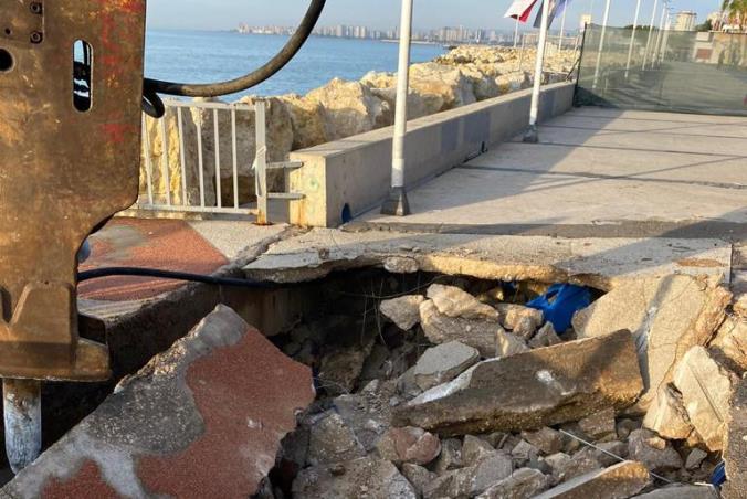 Mersin Büyükşehir Belediyesi Park ve Bahçeler Dairesi ekipleri tarafından Adnan Menderes Bulvarı sahili boyunca bulunan 4 iskelede, dalgaların aşındırması nedeniyle oluşan zemin boşluklarına tahkimat çalışması yapıldı.