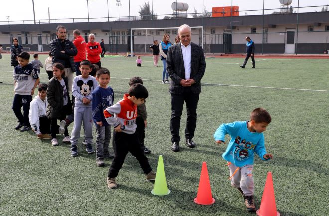 Kültür ve Sosyal İşler Müdürlüğü organizesinde Seyfi Ali Türkoğlu – Şafak Erdur Spor Tesisinde, deprem mağduru çocukların katılımıyla futbol idmanı, penaltı atışı ve mendil kapmaca gibi oyunlarla küçüklere moral verildi. Akdeniz Belediye Başkanı M. Mustafa Gültak da çocukların oyunlarına eşlik etti. Afetzede ailelerle de sohbet edip dertleşen Başkan Gültak, talepleri olup olmadığını sordu, dile getirilen isteklerin yerine getirilmesi için görevli personele talimat verdi.