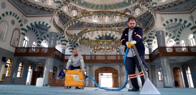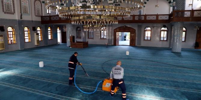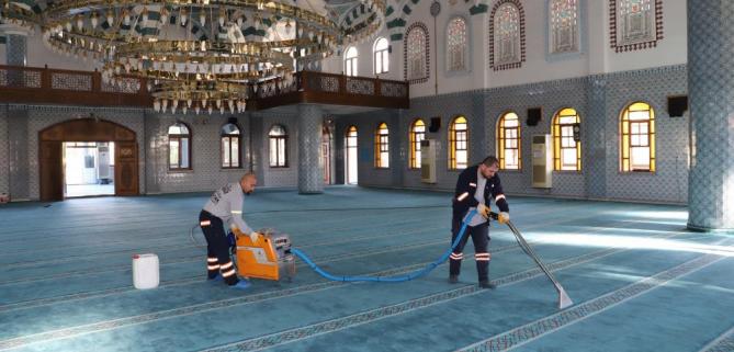 Park ve Bahçeler Müdürlüğü’ne bağlı olarak hizmet veren mobil dezenfekte ekibi, bu kapsamda, Mersin’in en büyük ibadethanelerinden biri olan ve Mersin Hali içerisinde bulunan Yeni Hal Kompleksi Camisinde önce kapsamlı bir temizlik, ardından da korona virüs salgınına karşı yoğun bir dezenfekte çalışması gerçekleştirdi