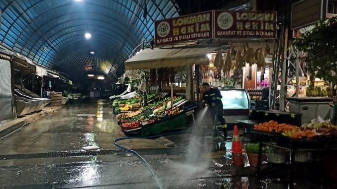 Semt pazarlarında kalan atıklar toplanıp tazyikli su ile yıkanıyor