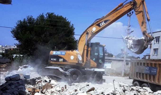 Mersin’in merkez ilçe Akdeniz Belediyesi, vatandaşların can ve mal güvenliğini tehdit eden, kent estetiğini bozan, kimi zaman da madde bağımlılarının mekânına dönüştüğü için sosyal sorunlara yol açan metruk binaların yıkımına devam ediyor. Belediyeden yapılan açıklamaya göre, özellikle mahalle muhtarları, yapı sahipleri ve vatandaşların yoğun talep veya şikayet dilekçeleri üzerine bugüne dek Akdeniz sınırları içinde terk edilmiş yüzlerce yapıyı yıkan Fen İşleri Müdürlüğüne bağlı ekipler, son olarak Kazanlı Hürriyet Mahallesinde bulunan ve yine sahiplerince kullanılmadığı için yıllar içinde harabeye dönen bir binayı yasal süreçleri tamamlandıktan sonra yıktı. Ekipler, yıkımdan sonra ortaya çıkan tonlarca moloz ve atığı da kepçeler yardımıyla kamyonlara yükleyip mahalleden çıkardı.