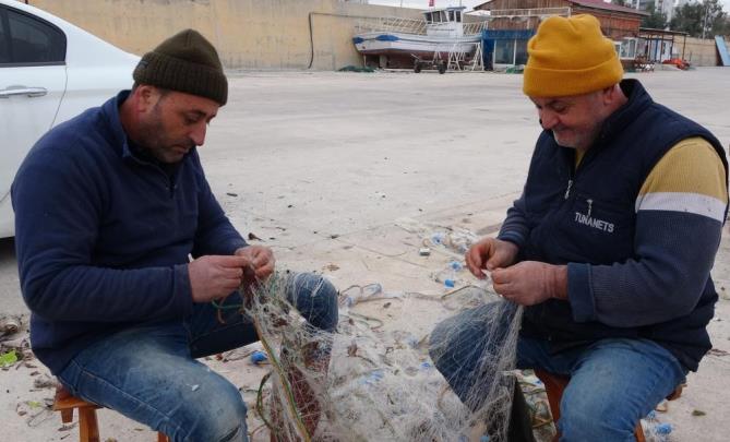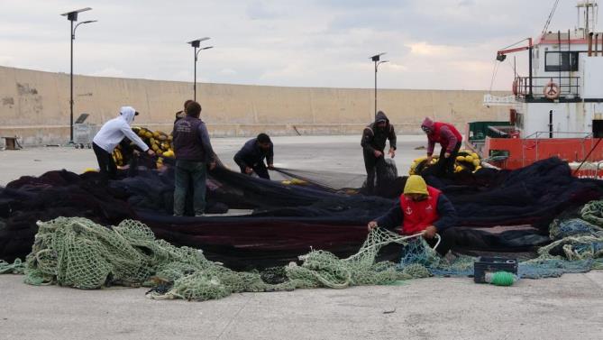 Balıkçı İsmail Taş ise ”Fırtına var diye teknelerimizi barınağa çektik. Şimdi ağlarımızın onarımı teknelerimizin bakımını yapıyoruz. Kısmet olursa hava düzeldikten sonra ya Allah diyeceğiz nasibimizi aramaya çıkacağız” diye konuştu.