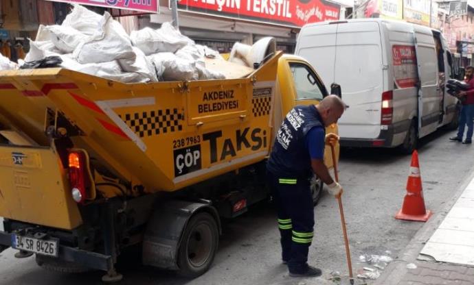 Salgına karşı çalışmalarına aralıksız devam eden ekipler, çöp konteyneri yıkama araçlarıyla da belirledikleri program dahilinde 65 mahallede bulunan binlerce çöp konteynerini ilaçlı su ile yıkayıp dezenfekte ediyor. Zaman içinde ömrünü tamamlayan veya zarar gören çöp konteynerleri de yenileriyle değiştiriliyor. Aralıksız süren hizmet kapsamında, çöp taksiler yardımıyla da insan ve araç yoğunluğunun olduğu kent merkezi ile merkez mahallelerde bulunan cadde ve sokaklarda yer alan çöpler toplanıyor, mini süpürge aracı ile sokaklar temizleniyor. Tarımsal üretimin yoğun olduğu kırsal mahallelere de ağırlık veren ekipler; tarla, bahçe ve seraların yanına atılan tonlarca tarımsal atığı toplayıp şehirden çıkarıyor. (Mersin Times)