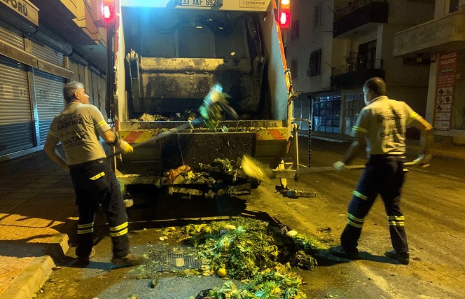 İlçe genelinde kurulan semt pazarlarında biriken her türlü atık ve çöpleri de toplayan ekipler, ardından pazaryerlerini arazöz yardımıyla tazyikli su ile baştan sona ilaçlı su ile yıkayıp dezenfekte ediyor.