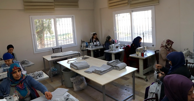 Akdeniz’de aralıksız süren yardım ve dayanışma seferberliği kapsamında, Özgürlük Mahallesi Kültür ve Sanat Evi’nin giyim sınıfı kursiyeri kadınları, eğitmenleri ile birlikte kısa süre içinde 150 adet içlik ile fanila üretti. Üretilen bu çamaşırlar ekiplere teslim edilerek, en kısa sürede felaketten etkilenen kentlerde, soğuk ve dondurucu havalarla da mücadele eden depremzede vatandaşlara ulaşması sağlanacak. Yeterli kumaş temin edildikçe üretim devam edecek ve diğer kültür evlerinde de dikimler yapılacak.