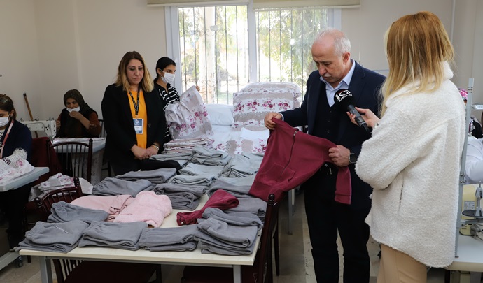 Akdeniz Belediye Başkanı M. Mustafa Gültak, Mersin’e gelen depremzede vatandaşlara ulaştırılmak üzere seri şekilde yüzlerce içlik ve fanila, çocuk ve yetişkinler için polar kazaklar ve eşofman takımları üretimini sürdüren Özgürlük Mahallesi Kültür ve Sanat Evi kursiyerlerini ziyaret etti. Depremzedelerin bir yandan soğuk havalarla mücadele ettiğini ifade eden Başkan Gültak, bu nedenle örnek bir dayanışma örneği sergileyip çeşitli kıyafetler üreten Akdenizli kadınlara teşekkür etti.