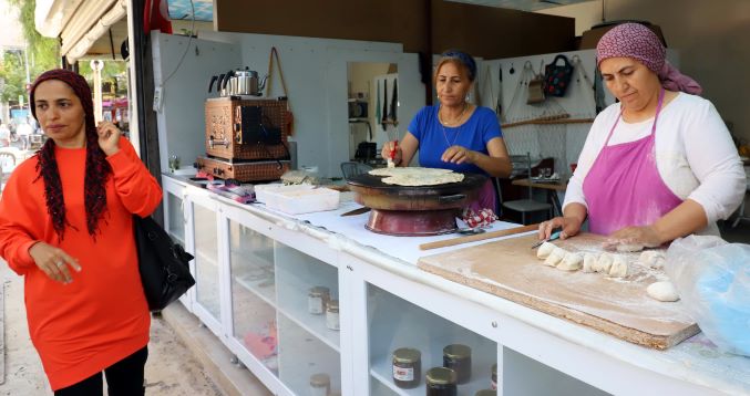 Ürettikleri ürünler ile kent ve ülkeye katma değer sağlayan kooperatiflerin bulunduğu Zeytinlibahçe Caddesi ile Kuvai Milliye Caddesi’nin kesiştiği yerde yer alan Akdeniz Belediyesi Kadın Emeği Diyarı’nda faaliyet gösteren kadınlar, ata tohumundan elde edilen unlar ile sıkma ve börek yaparak vatandaşların beğenisine sundu.