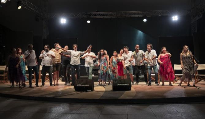 Polis Evi karşısındaki Amfi Tiyatro’da sahnelenen müzikli oyun gösterisini Mersinliler yoğun bir ilgiyle izledi. Vatandaşların pandemi ve kapanmalar nedeniyle uzak kaldıkları kültür ve sanat etkinliklerini Mersinlilerle buluşturmaya devam eden Büyükşehir Belediyesi, normalleşme adımlarının atıldığı bugünlerde Mersinlilerin sanata olan hasretini giderdi. Gösteriyi izleyenler arasında Büyükşehir Belediyesi Kültür ve Sosyal İşler Dairesi Başkanlığı Koordinatörü Bengi İspir Özdülger, Mersin Şehir Tiyatrosu Sanat Yönetmeni Murat Atak ile çok sayıda sanatsever yer aldı. Söylenen şarkılara hep bir ağızdan eşlik eden ve ritme ayak uyduran vatandaşlar sanat dolu bir akşam geçirdi. Şehir Tiyatrosu oyuncularının sahnelediği gösteride edebiyat tarihinde önemli yer edinmiş şiirler ve severek dinlenen şarkılar seslendirildi. Şiir ve şarkıların yanı sıra oyuncular danslarıyla göz doldurdu. Müzikli oyun gösterisi ‘Güzel Günler Göreceğiz’ şarkısının seslendirilmesi ile sona erdi.