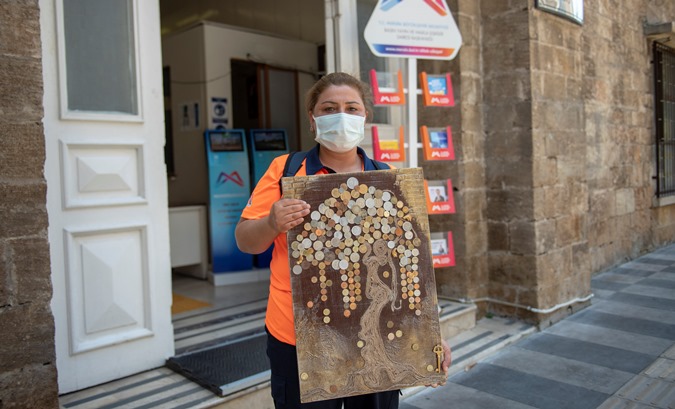 Büyükşehir Belediyesi’nin saha temizlik personeli Dilek Cansız, mesai arkadaşları ve kendisinin temizlik sırasında bulduğu atıkları sanat eserine dönüştürüyor. Bozuk para, evsel atık ve diğer pek çok farklı atığı değerlendirerek birbirinden güzel eserler ortaya çıkaran Cansız, 5 Haziran Dünya Çevre Günü’nde yaptığı tablolardan bir tanesini Başkan Seçer’e hediye etti.