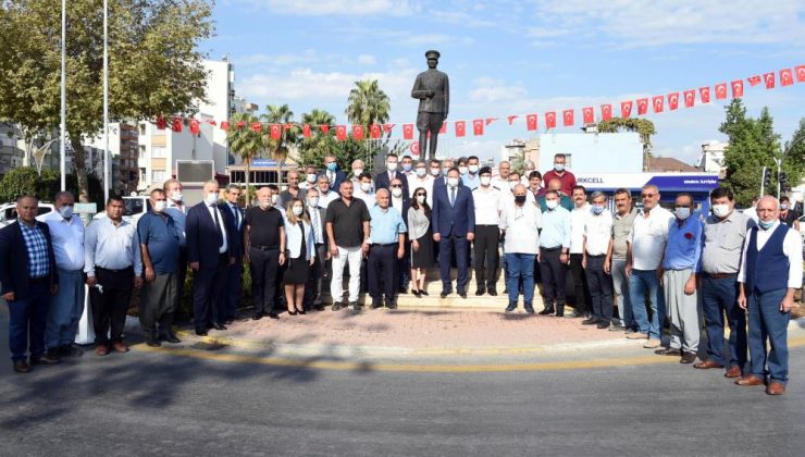 Muhtarlar Günü dolayısıyla düzenlenen kahvaltı sonrasında protokol üyeleri mahalle muhtarlarına çiçek takdim ederek, günlerini kutladılar. (Mersin Times)