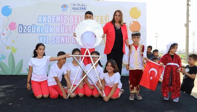 Etkinlikte kreş öğrencilerinin sahnelediği Diyarbakır yöresine ait halkoyunları, giyim ve el sanatları sınıflarının hazırladığı geri dönüşüm ve yöresel kostüm sergisi, eğitimde oyun etkinlikleri kursu öğrencilerinin hazırladığı İstiklal Marşı ve bayrak gösterisi izleyenlerden tam not aldı. Buluşmada, kreş öğrencisi miniklerin karneleri de törenle takdim edildi. Etkinlikte konuşan Başkan Mustafa Gültak, “Akdeniz’de artık, barış ve kardeşlik var. Artık Akdeniz’de hiç kimse dilinden, dininden, mezhebi ve etnik kökeninden dolayı ötekileştirilmiyor. Akdeniz artık sevgi ve muhabbet dolu. Tabi bu günlere kolay gelmedik. Ama sizlerle birlikte azimle devam ediyoruz. Özellikle kadınlar ve gençlere yönelik yoğun projeler üretiyoruz” diye konuştu.