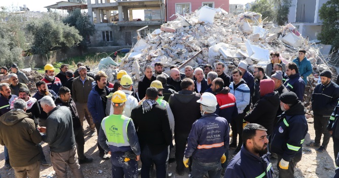 Bölgede, ağır iş makineleri yardımıyla aralıksız arama ve kurtarma faaliyeti yürüten fen işleri müdürlüğü ekiplerinden bilgi alan ve deprem mağduru acılı vatandaşları dinleyen Akdeniz Belediye Başkanı Mustafa Gültak; “Karşılaştığımız manzara gerçekten çok büyük bir afet yaşadığımızı gösteriyor. Maalesef dünyada bugüne dek örneği olmayan bir felaketi yaşıyoruz. Hayatını kaybeden vatandaşlarımıza Allah’tan rahmet, yakınlarına başsağlığı ve sabır diliyorum. Tüm Türkiye’nin başı sağ olsun. Yıkımın boyutu ne yazık ki çok ağır ama yaralarımızı hep birlikte saracağız” dedi.