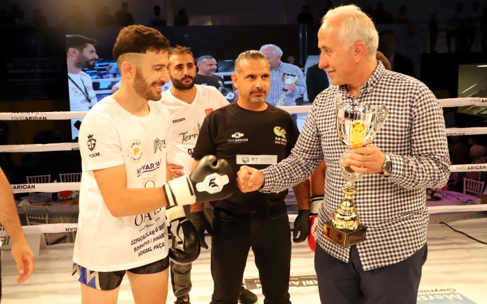 Başkan Yardımcısı Onur Eryılmaz Gümüştok’un da katıldığı etkinlikte Başkan Gültak, uluslararası organizasyon nedeniyle Milli Sporcu Fikri Arıcan’a, müsabakalara katılan Muay Thai sporcuları ve sporseverlere teşekkür etti.