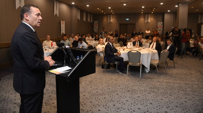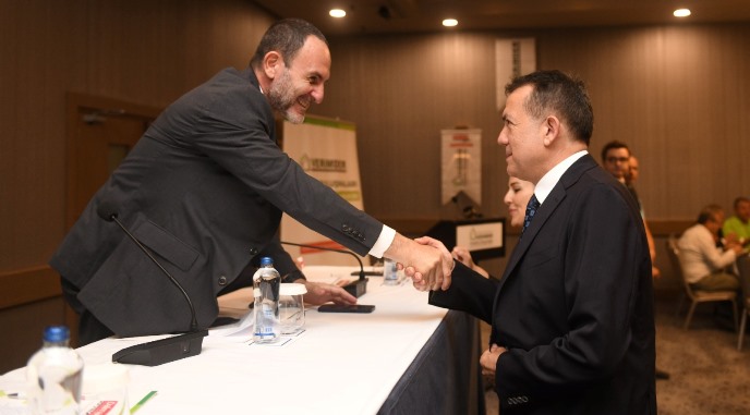 Mersin Yenişehir Belediye Başkanı Abdullah Özyiğit, Mersin Büyükşehir Belediye Başkanı Vahap Seçer, MTSO Yönetim Kurulu Başkanı Ayhan Kızıltan, İstanbul Topkapı Üniversitesi Rektörü ve VERİMDER İcra Kurulu Başkanı Emre Alkin, Yapılarda Enerji Verimliliği Derneği(VERİMDER) Başkanı Çağdaş Korkmaz ve Dünya Gazetesi Genel Koordinatörü Vahap Munyar’ın katılımıyla Mersin’de düzenlenen “VERİMDER Anadolu Buluşmaları” toplantısına katıldı.