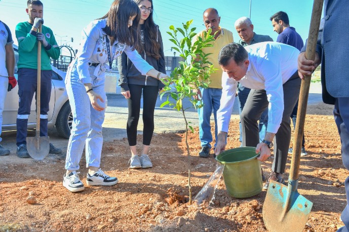 Yenişehir Belediye Başkanı Abdullah Özyiğit, 11 Kasım Milli Ağaçlandırma günü etkinlikleri kapsamında Toros Üniversitesi Sağlık Hizmetleri Topluluğu öğrencileri ile birlikte orkide, jakaranda ve turunç fidanlarını toprakla buluşturdu. 50.Yıl Mahallesi’ndeki fidan dikim etkinliğinde öğrencilerle birlikte fidanlara can suyu veren Başkan Abdullah Özyiğit, Yenişehir Belediyesi olarak İklim ve Enerji için Avrupa Belediye Başkanları Sözleşmesi’ne imza attıklarını da hatırlattı. Başkan Özyiğit, “Yaptığımız işlerle doğaya katkı sunmamız gerekiyor. Bugün oluşturduğumuz korulukta insanlarımız rahat bir nefes alacak, yürüyüş yapabilecek ve bu ağaçlar doğaya katkı sunacak. Burası artık bizim ve buraya gözümüz gibi bakacağız. Gençlerimizin de burada sorumluluğu var. Onlarda buraya gözü gibi bakacaklardır. Yenişehir,  Mersin’in nüfus yoğunluğu en yüksek ilçesi. Yenişehir’de yeşil alanları artırmak gibi bir zorunluluğumuz var. Bu konuda çabalarımız sürüyor. Yeşil alan ve park alanları oluşumu noktasında ekiplerimiz yoğun çalışıyor. Bunun gibi diğer yeşil alan artırma çalışmalarımızı gençler ile birlikte yapacağız. Onlara güveniyoruz ve bu sorumluluğu almaları gerekiyor. Bu etkinlikte emeği geçen tüm ekip arkadaşlarımıza ve Toros Üniversitesi Sağlık Hizmetleri Öğrenci Topluluğuna teşekkür ediyorum.” şeklinde konuştu.