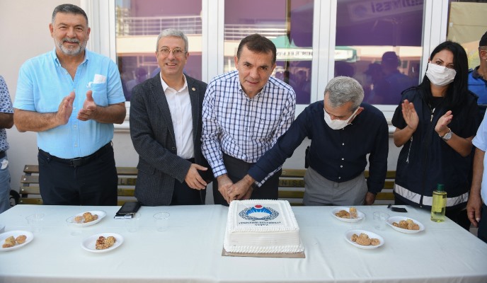 Ziyaret sonunda Yenişehir Belediye Başkanı Abdullah Özyiğit günün anısına CHP Mersin Milletvekili Alpay Antmen ve Zabıta Müdürü Ahmet Kurt ile birlikte pasta kesti. (Mersin Times)