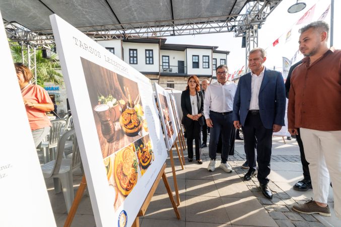 Mersin Büyükşehir Belediyesi tarafından bu yıl ‘Toprakta Tarih, Sofrada Tat, Sokakta Neşe’ sloganıyla 4.’sü gerçekleştirilen ‘Uluslararası Tarsus Festivali’ 7-8-9 Kasım tarihlerinde sürecek şekilde tüm coşkusu ve enerjisi ile başladı. Festival kapsamında, Mersinden Kadın Kooperatifi Yönetim Kurulu Başkanı Meral Seçer ve Refika’nın Mutfağı’nın kurucusu Refika Birgül’ün ‘Kadim Lezzetleri ile Yenilikçi Tarsus Mutfağına Fikirler’ adlı ‘Gastronomi Show’u ilk güne renk kattı. St. Paul Meydanı’nda gerçekleştirilen söyleşi tadındaki Gastronomi Show’u Türkiye Belediyeler Birliği (TBB) Başkan Vekili ve Mersin Büyükşehir Belediye Başkanı Vahap Seçer de dinledi.