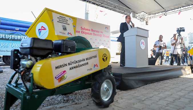 Anamur Tropikal Meyve Üretim ve Pazarlama, S.S Anamur Muz Üreticileri Tarımsal Kalkınma Kooperatifleri, Anamur Yaş Sebze ve Meyve Komisyoncuları Derneği ve Bozyazı’da faaliyet yürüten DOKUDER’e 1’er adet muz dal parçalama makinesi teslim edilen törende; Anamur Anıtlı ve Güneybahşiş mahallelerine toplam 1.404 metre ve Bozyazı Kızılca Mahallesine de 1.404 metre HDPE sulama borusu verildi. Ayrıca Anamur’da 8, Bozyazı’da da 4 mahalleye hamur yoğurma makinesi dağıtıldı.