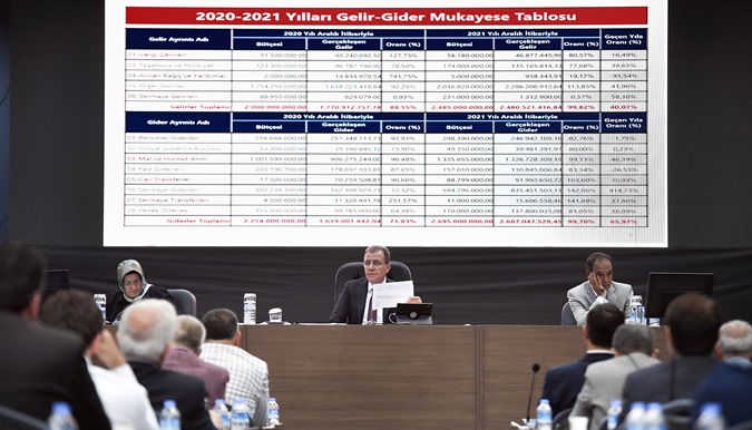 Meclis toplantısında, Mersin Büyükşehir Belediyesi 2021 Mali Yılı Kesin Hesabı ile ilgili Plan ve Bütçe Komisyonuna havale edilen konu oylandı. Başkan Seçer, konuyla ilgili 2020-2021 yılları gelir- gider mukayese tablosu, aylık sabit giderler tablosu, banka kredileri icmal tablosu, güncel borç icmali ve Mersin Büyükşehir Belediyesi borçlar icmali gibi konular hakkında meclis üyelerini detaylı bilgilendirdi, sunum yaptı. Seçer, “2021 yılında gelir bütçemiz tahmini olarak 2 milyar 485 milyon olarak belirlenmişti. Gerçekleşen bütçemiz 2 milyar 480 milyon 521 bin lira. Yani tahmin ettiğimiz gelir bütçemizin yüzde 99.82’sini gerçekleştirdik. Bu son derece iyi bir bütçe hazırlama tekniği ile çalıştığımızı gösteriyor. Gelir bütçemizin gerçekleşme oranı bir önceki yılda da yüzde 88,5 olmuştu. Gelir bütçemiz 2020’ye göre yüzde 40 artış gösterdi” diye konuştu.