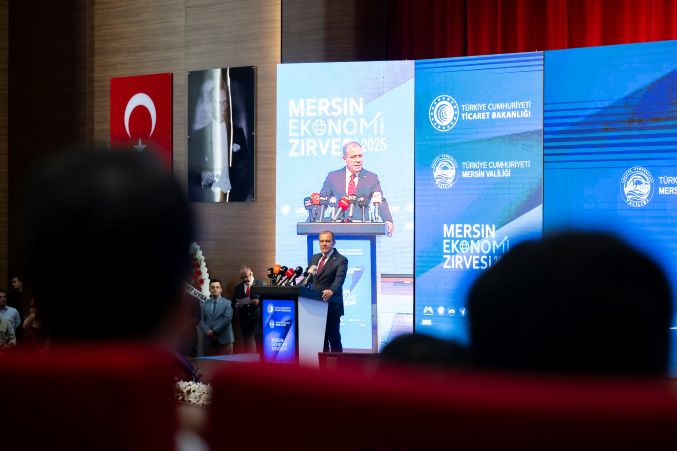 Ticaret Bakanı Prof. Dr. Ömer Bolat konuşmasına, Mersin Ekonomi Zirvesi için emek veren tüm paydaşlara teşekkür ederek başladı. Mersin Ekonomi Zirvesi’nin önemine değinen Bakan Bolat, “Mersin’in küresel bir oyunculuğa yükselmesi ve marka şehir olması için önemli bir başlangıç noktası” dedi. Zirve’nin sonuç bildirgesinde 70’ten fazla yapılacak aksiyon olduğunu sözlerine ekleyen Bolat, “Sonuç Bildirgesi, aslında güçlü ve gelişmiş bir Mersin için bir yol haritası. Bundan sonra artık Zirve’nin kıymetli aktörleri tarafından her bir aksiyonun takibinin yapılması gerekiyor” diye belitti. Bolat, ardından Mersin’in dış ticaretinde makroekonomik göstergeleri ve Türkiye’nin küresel ihracattaki payını paylaşırken, “Mersin ki nasıl çok güzel bir şekilde siyaset üstü bir birliktelik gösteriyorsa; Türkiye olarak siyasette, ekonomide, dış politikada, savunma sanayinde ve askeri alandaki başarılarımıza da hep birlikte sevinmemiz çok önemli” ifadelerini kullandı. Mayıs ayında serbest bölgeler ihracatında rekor kırıldığını söyleyen Bolat, “19 tane serbest bölgemiz var, Mersin’in Serbest Bölgesi 2. oldu” dedi.