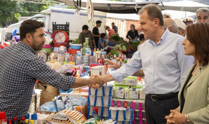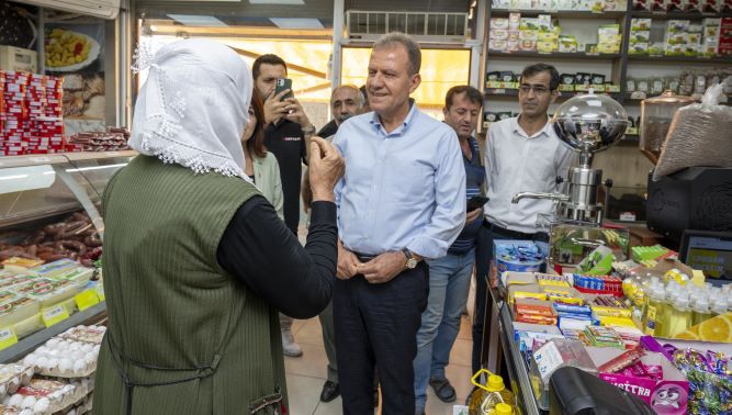 Mersin Büyükşehir Belediyesi Başkanı Vahap Seçer, esnaf ve vatandaş ziyaretlerini Akdeniz ilçesine bağlı Güneş Mahallesi’nde sürdürdü. Semt pazarında alışveriş yapan vatandaşları ve pazarcı esnafını ziyaret eden Seçer, esnafın sorunlarını dinledi, vatandaşlarla da sohbet etti. Ziyarette Seçer’e ilgi gösteren vatandaşlar, “Seni nasıl başkan yaptıysak Kılıçdaroğlu’nu da Cumhurbaşkanı yapacağız. Pazar gününden sonra iyi olacağız. Kazanacağız” dediler.