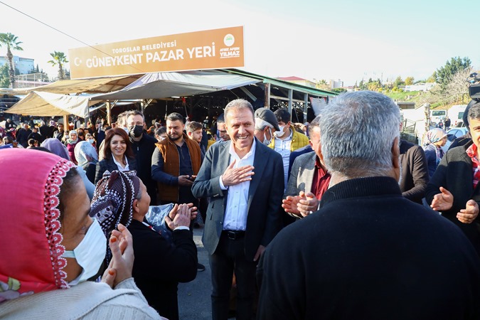 Daha sonra Güneykent Pazar Yeri’ni gezen, pazarcı esnafı ve vatandaşlarla bir araya gelen Başkan Seçer, yoğun ilgiyle karşılandı. Başkan Seçer, pazarcı esnafına ‘Hayırlı İşler’ dilerken, vatandaşlarla da hatıra fotoğrafı çektirdi. Ailesinin satış yapmak için geldiği pazar yerinde minik Keremcan ile Başkan Seçer arasında hoş bir diyalog gerçekleşti. Seçer, Keremcan ile sohbetinin ardından ondan portakal satın aldı.