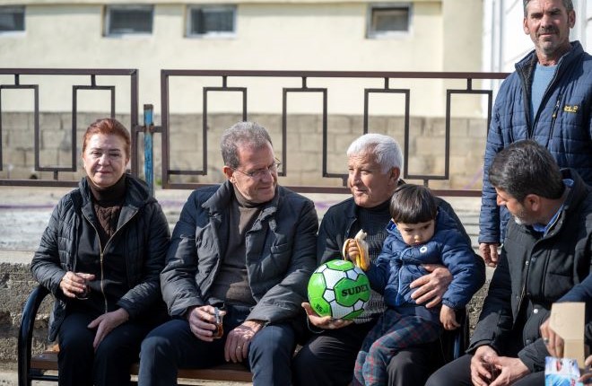Başkan Seçer, Büyükşehir tarafından yapımı hızla devam eden Konteyner Kent’teki incelemelerinin ardından, ilçe ziyaretlerini sürdürdü. Bölgelerde depremzedelerle buluşan Başkan Seçer, çocuklara da çeşitli hediyeler vererek yüzlerini gülümsetti.