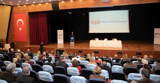 Mersin Büyükşehir Belediye Başkanı Seçer, Mersin Kent Konseyinin Kongre ve Sergi Sarayında gerçekleştirdiği olağan genel kuruluna katıldı. Mersin Kent Konseyi Başkanlığına Ayferi Tuğcu seçildi.