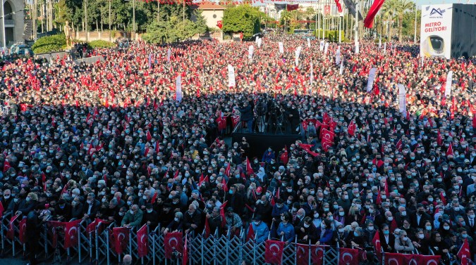 CHP Genel Başkanı Kemal Kılıçdaroğlu, temel atma töreni için Cumhuriyet Meydanı’nı dolduran coşkulu kalabalığa seslenerek; “Benim umudum sizlersiniz. Bu meydanda miting yapmamıza daha önce izin vermemişlerdi. Demek ki meydan dolabiliyor. Demek ki halk değişim istiyor. Demek ki halk seçim istiyor. Demek ki halk dönüşüm istiyor. Demek ki halk adalet istiyor, adalet. Hak istiyor, hukuk istiyor” dedi.