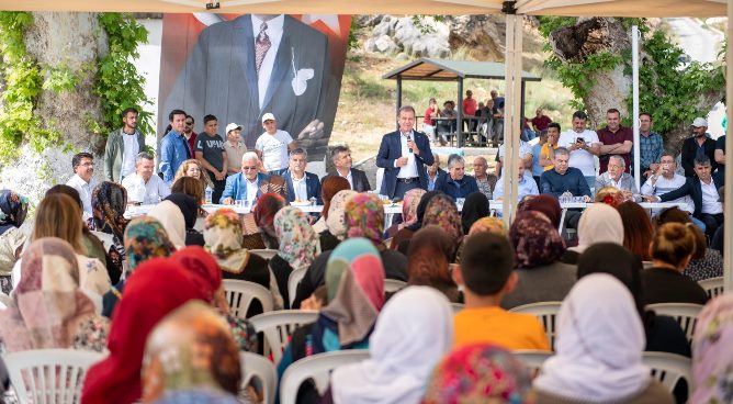 Başkan Seçer, Mersin Büyükşehir Belediyesi’nin Dosthane, Eğitim ve Öğretimi Destekleme Kurs Merkezleri, Hamile Bakım Sütü Projesi, gıda kolisi destekleri, evde sağlık ve bakım hizmetleri, fide-fidan destekleri gibi önemli sosyal belediyecilik hizmetlerini anlatarak, “Belediyecilik sadece yol yapmak değil. Kanalizasyonu yapacağız ama şunu unutmayalım; belediye herkesin evi, belediye başkanı herkesin babası, herkesin abisi, belediyecilik böyle bir şey. Bizde genel alışkanlık; belediye dendiği zaman akla beton gelir. Bir de imar gelir. Belediyecilik bunlar değil. Biz sosyal belediyecilikte Türkiye’de çığır açmış belediyeyiz” diye konuştu.