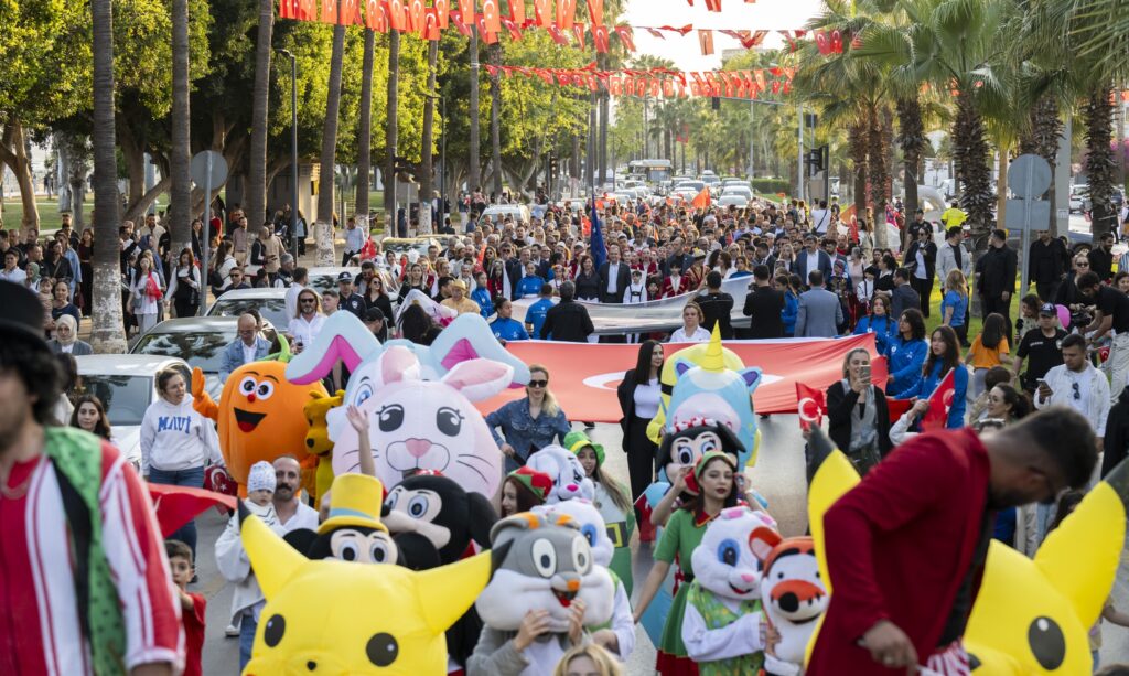 Mersin, 23 Nisan Ulusal Egemenlik ve Çocuk Bayramı’nı rengârenk, cıvıl cıvıl bir kortejle kutladı. Mersin Büyükşehir Belediye Başkanı Vahap Seçer ile Meral Seçer’in çocuklara eşlik ettiği ve Mersin Büyükşehir Belediyesi tarafından düzenlenen ‘23 Nisan Ulusal Egemenlik ve Çocuk Bayramı Korteji’nde bayram coşkusu binlerce çocuğun ve vatandaşın katılımıyla sokaklara taştı.