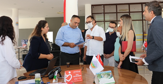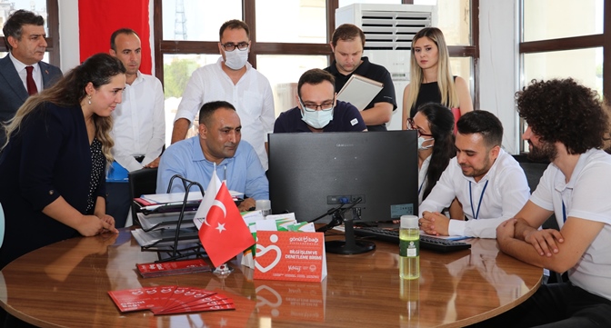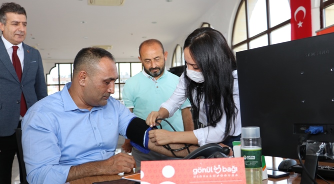 Başkan Yılmaz, “Çare Bizde” birimini ziyareti sırasında birimde görev alan sağlık ekiplerine tansiyon ve kan şekeri ölçümü de yaptırdı.