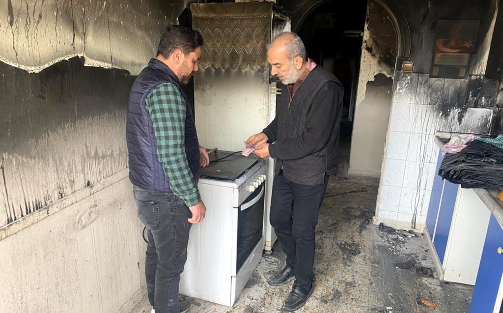 Hemen amirlerine haber veren belediye personeli Sinan Karakoç, söndürme çalışmaları sırasında ıslanan ancak alevlerden zarar görmeyen parayı evin sahibi Şaban Serpin’e teslim etti.