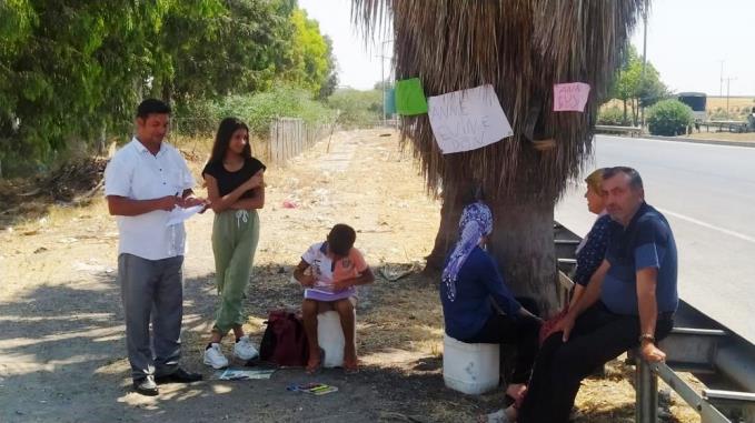 Eşinin çalıştığı özel bir şirketin önünde 2 çocuğu ile eve dönmesi için oturma eylemi yapan Karabulut’a, 2 çocuğu ve birleşmesini isteyen komşuları da destek verdi. Çocukları 14 yaşındaki Aleyna Zahide Karabulut ile 11 yaşındaki Selahattin Karabulut, açtıkları dövizle, annelerinin bir an önce eve dönmesini istedi. (Mersin Times)