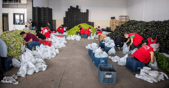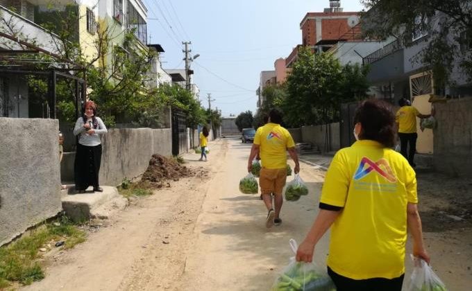 Sebzeleri ihtiyaç sahiplerine ulaştırmak için Mersin Büyükşehir Belediyesi personeli seferber oldu. Kabak, salatalık, biber ve patlıcandan oluşan 90 ton sebzeyi paketleyen Büyükşehir personeli, kapı kapı dağıtıp, hem üreticinin hem de vatandaşın yüzünü güldürdü. Büyükşehir Belediyesi’nin farklı daire başkanlıklarında görev yapan tiyatro sanatçılarından antrenörlere, aşçısından ziraat teknikerlerine kadar tüm personel bir araya geldi, önce sebzeleri paketledi daha sonra kapı kapı ihtiyaç sahibi vatandaşlara ulaştırdı. Mersin Büyükşehir Belediyesi Kültür ve Sosyal İşler Dairesi Başkanlığı Koordinatörü Bengi İspir Özdülger, personel, tiyatro ve orkestra sanatçıları ile birlikte sebzeleri vatandaşlara ulaştırmak için bir araya geldiklerini belirterek, “Onlara bu zorlu süreçte yanlarında olduğumuzu, bu zorlukları atlatırken her zaman da yanlarında olacağımızı hissettireceğiz. Bayram öncesi yapacağımız bu çalışmayla paketleri vatandaşlarımıza sunarken bayramlarını da kutlayacağız. Başkanımızdan selam götüreceğiz. ‘Her zaman yanınızdayız’ diyeceğiz. Bunu yapıyor olmaktan duyduğumuz mutluluğu hissettireceğiz. Çünkü gerçekten ben ve arkadaşlarım çok mutlu ve gururluyuz” diye konuştu.