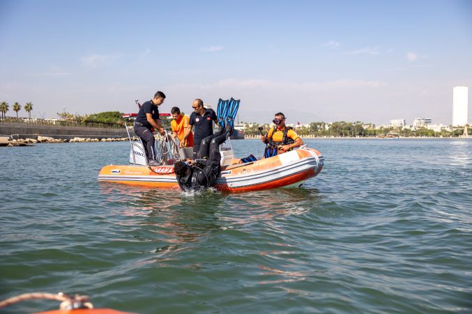 Mersin Büyükşehir Belediyesi İtfaiye Dairesi Başkanlığı, Afet Arama ve Kurtarma Şube Müdürlüğü’ne bağlı Su Altı ve Su Üstü Arama Kurtarma Amirliği ekipleri, başarılı çalışmalarına ve eğitimlerine devam ediyor. Deniz, göl, gölet, nehir gibi alanlarda çalışmaları yürüten ekipler, doğal afet ve su baskınlarında da görevlerini kesintisiz sürdürürken, 112 Acil Çağrı Merkezi çağrılarında görev başında olan profesyonel kurtarma ekipleri ise kara üzerinde dere yatakları, su kuyuları gibi alanlarda kurtarma çalışmalarına destek oluyor. Su altı ve su üstü görevlerini yerine getiren ekipte, 1 bot kaptanı, 1 halat kontrolörü, 1 güvenlik dalgıcı ve 3 arama kurtarma dalgıcı görev yapıyor.