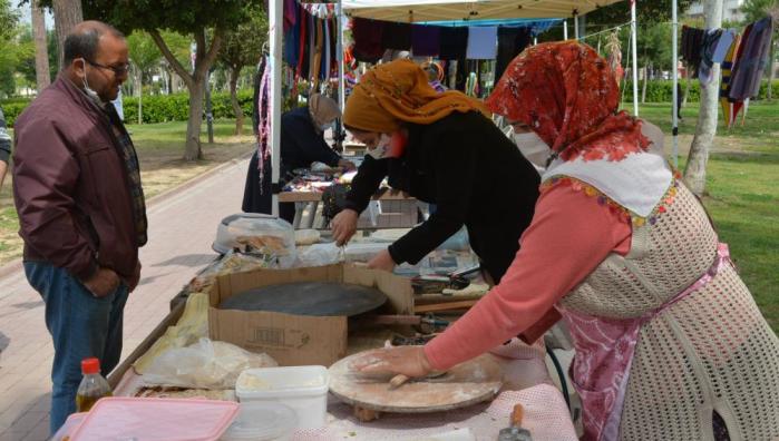 Mersin Büyükşehir Belediyesi, kadın üreticileri desteklemeye ve ürünlerine değer katmaya devam ediyor. Bu kapsamda, üretici kadınlar bir kez daha Tarsus’ta stant açtı. Tarsus Kültür Park içinde sosyal mesafe ve hijyen kurallarına azami özen gösterilerek açılan stantlarda, el emeği ürünlerin kazanca dönüşmesi ve geleneksel tatların daha geniş kesimlere ulaşması amaçlandı. 50 standın kurulduğu alanda, Mersin’in birçok ilçesinden ve Tarsus’tan toplam 102 kadın üretici, 2 gün boyunca ürünlerini satma imkanı buldu.