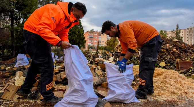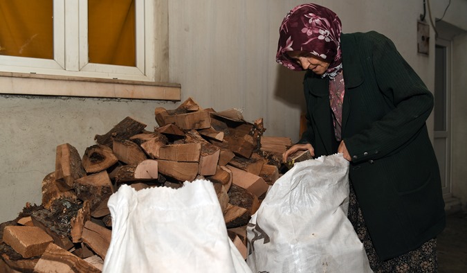 Büyükşehir Belediyesi Engelliler ve Sağlık Hizmetleri ile Park ve Bahçeler Dairesi koordinesinde yürütülen çalışmayla belediyenin fidanlığında biriktirilen ağaçlar, ekipler tarafından kullanıma uygun hale getirilerek çuvallara yerleştiriliyor. Büyükşehir Belediyesi Yaşlı Destek Birimi personeli ise odunları yaş almış vatandaşlara teslim ediyor.