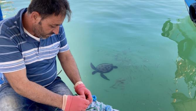 Kaplumbağaları elleriyle besleyen barınak balıkçılarından Mustafa Çetintaş ise “Caretta carettalar her sabah buraya geliyor. Bizimle beraber ağı temizlerken attığımız balıklarla karınlarını doyuruyorlar. Küçük ıskarta balıkları parçalayıp atıyoruz. Parçalayıp atınca daha rahat yiyorlar. Isırarak yedikleri için balık bütün olunca baya bir rezil oluyorlar. Parçalayıp attığın zaman daha rahat yiyorlar.