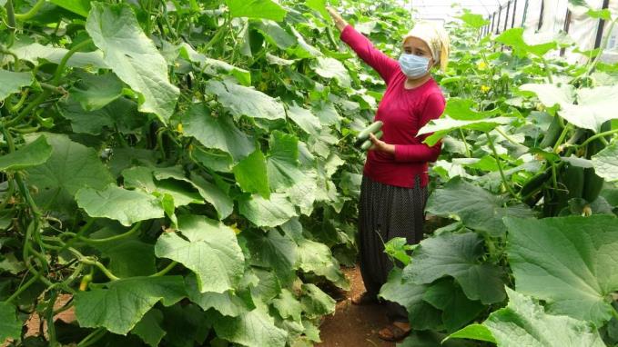 Örtü altında salatalık toplayan Zehragül Sezer ise, “Bugün Dünya Çiftçiler Günü. Biz 40-50 derece sıcaklık altında çalışıyoruz. Biz Türkiye için çalışıyoruz, biz dünya için çalışıyoruz” dedi.